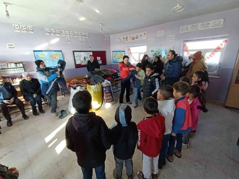 İnegöl Belediyespor dağcılık branşı sporcuları, Süphan Dağı kış zirve faaliyeti için gittiği Bitlis’te, 2 bin 300 rakımlı Türkiye’nin en yüksek köyü olan Aydınlar ilçesi Kışkılı Mahallesi çocuklarına kışlık kıyafet yardımında bulundu.