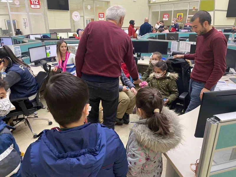 Çağrı Merkezi ziyaretleri sırasında gösterilen ilgiden memnun dönen Sabancı İlköğretim Okulu 2-B sınıfı öğrencileri 112 çalışanlarına da teşekkür ettiler.