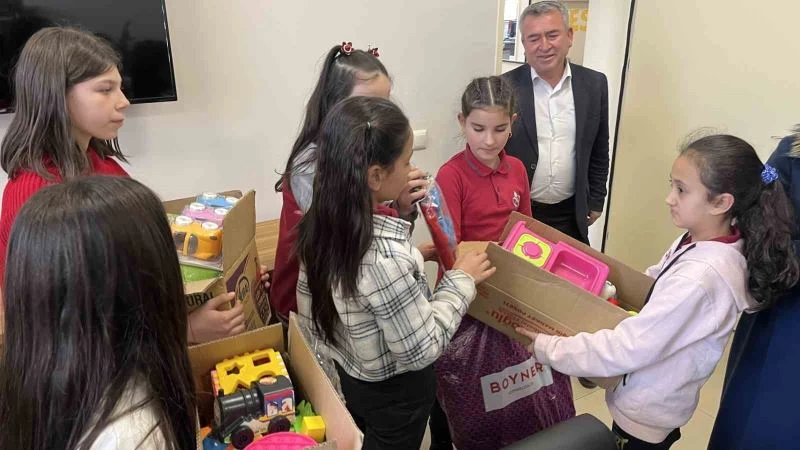 Öğrencilerin Din Kültürü ve Ahlak Bilgisi Öğretmeni Elif Değirmendere konuyla ilgili, ‘Çevreme Duyarlıyım Ve Değerlerime Sahip Çıkıyorum’ isimli bir projemiz var bakanlık onaylı. Gençlik Spor İl Müdürlüğü diyanet kısmı ve Milli Eğitim Müdürlüğü ile beraber yürütülüyor. Projede öğrencilerimizin çevreye duyarlılık kazanması, değerler eğitimiyle alakalı değerleri benimsemeleri için her hafta bir etkinliğimiz oluyor. Bu dönemde de biz farklı etkinliğimiz olmasına rağmen depremden etkilenen öğrencilere, çocuklar için bir şeyler yapmak için aklımıza bu fikir geldi. Çocuklarla birlikte bir oyuncaklar topladık elimizden geldiğince, paylaşımda bulunmak istedik. Çocuklarımız 11 şu an hepsi beşinci sınıf öğrencileri” dedi.