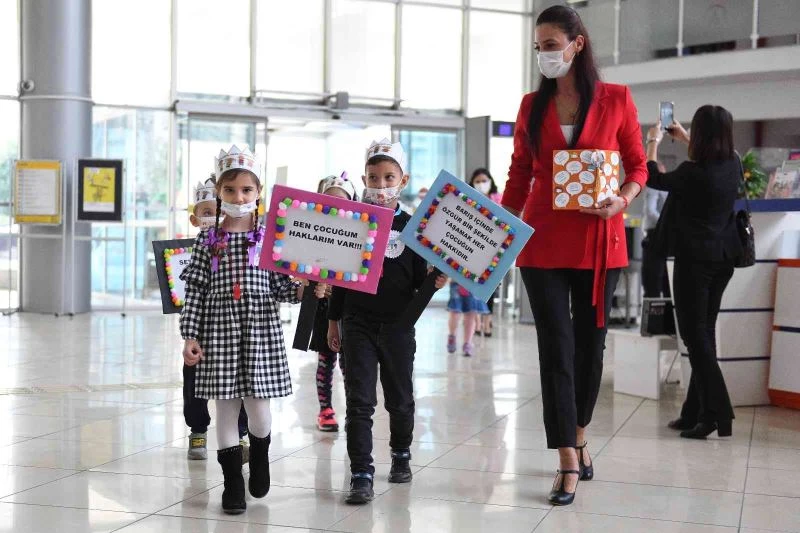 Öğretmenlerinin eşlik ettiği küçük öğrenciler, Belediye Başkanı Ümit Uysal’ın makamından Mali Hizmetler Müdürlüğü’ne birimleri tek tek dolaştı. Düdüklerini çalarak dikkatleri üzerlerinde toplayan çocuklar, taşıdıkları dövizlerle sahip oldukları hakları büyüklere anlattı. Öğrencilerin, belediyede son durağı ise Başkan Yardımcısı Hüseyin Sarı’nın makamı oldu.