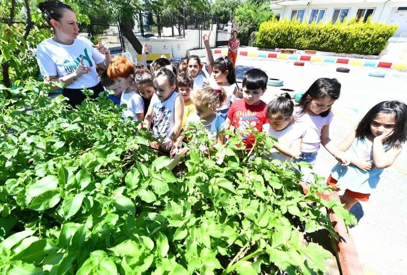 İzmir Büyükşehir Belediyesi İZELMAN Anaokulları’nın EVKA-4 şubesinde kurulan tarım atölyesi ile öğrenciler hem meyve ve sebzelerin gelişimini yakından izliyor hem de üretim sürecine dahil oluyor.