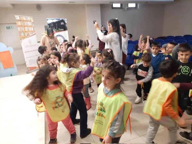 DÜZCE – Düzce İl Halk Kütüphanesi, ilkokul öğrencilerinin yanı sıra ana sınıfı öğrencilerini de ağırlıyor. Öğrencilere hem çocuk kütüphanesi anlatıldı hem de gönüllerince eğlendi.