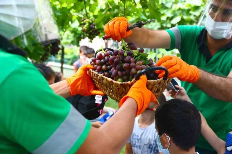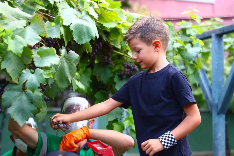 İçerisinde 8 çeşit 220 asma ağacının bulunduğu Üzüm Bağı’na öğretmenlerinin refakatinde gelen minikler farklı bir gün yaşadı. Asma ağaçlarının arasında koşan ve oyun oynayan minikler, daha sonra görevlilerin yardımıyla dalından meyve topladı. Meyvelerden tadan öğrenciler topladıklarını da sepetlere koyarak arkadaşlarına götürdüler.