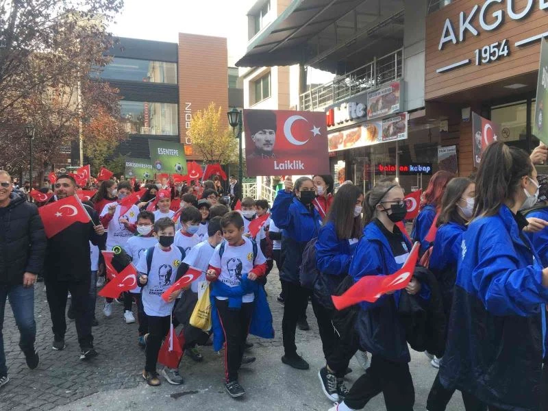 29 Ekim Cumhuriyet Bayramı yürüyüşüne yüzlerce minik futbolcuların yanı sıra Eskişehirspor bando takımı, animatörler ve çok sayıda vatandaş katıldı. Hamamyolu’nda toplanan minik futbolcular ve aileleri bando eşliğinde marşlarla birlikte Porsuk Bulvarı’na kadar yürüdü. Minikler ve aileleri ellerinde Türk bayraklarıyla yürürken sokak ve cadde üzerindeki esnaf ve vatandaşlar alkışlarla 29 Ekim coşkusuna ortak oldu.