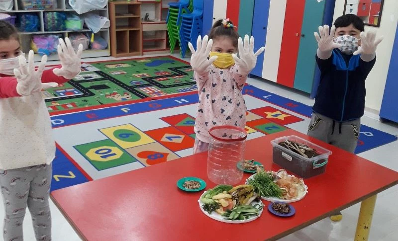 Erdek ilçesinde minikler dönüşümün önemini öğreniyor.
