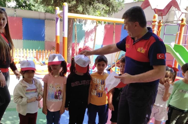 Adıyaman Belediyesi İtfaiye Müdürlüğü ekipleri, miniklere yangın eğitimi verdi.