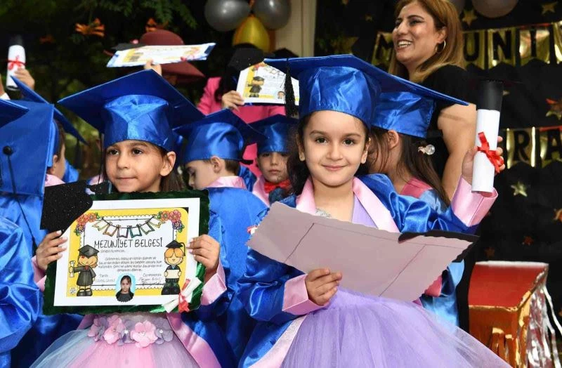 Çukurova Belediyesi’nin projelerinden birisi olan “Gülen Yüzler Semt Kreşlerinde” eğitimlerini tamamlayan 220 minik öğrenci için mezuniyet töreni düzenlendi. İlçe sınırları içerisinde bulunan ve Çukurova Belediyesi Tesisler Müdürlüğü’ne bağlı 8 semt kreşinde eş zamanlı olarak düzenlenen mezuniyet etkinliklerinde, okul hayatlarının ilk durağını başarıyla tamamlayan 5 ve 6 yaşındaki miniklerin gösterileri güne damgasını vurdu.