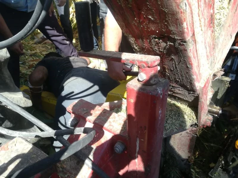 Mısır silaj makinesine kaptırdığı sol bacağı parçalandı