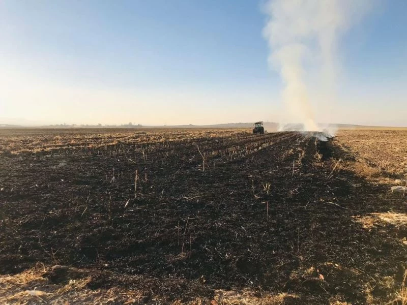 Eskişehir’de hasadı yapılmış mısır tarlasında anız yakan şahıs hakkında yasal işlem başlatıldı.