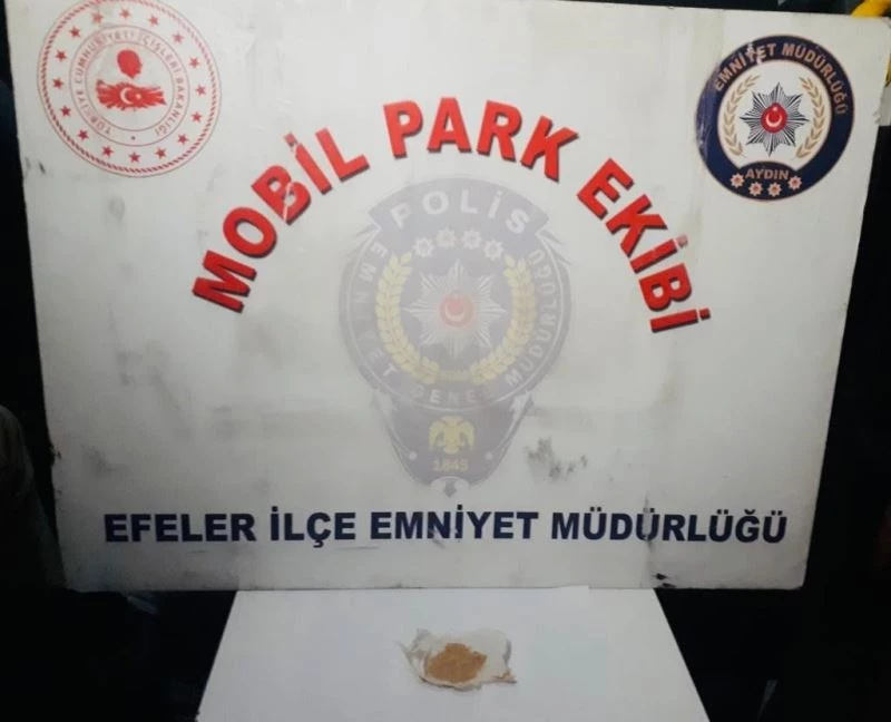 Aydın İl Emniyet Müdürlüğü Devriye Ekipler Amirliği’ne bağlı Mobil Park Ekibi şüphelendikleri bir şahsın üst aramasında bir miktar uyuşturucu madde ele geçirdi.