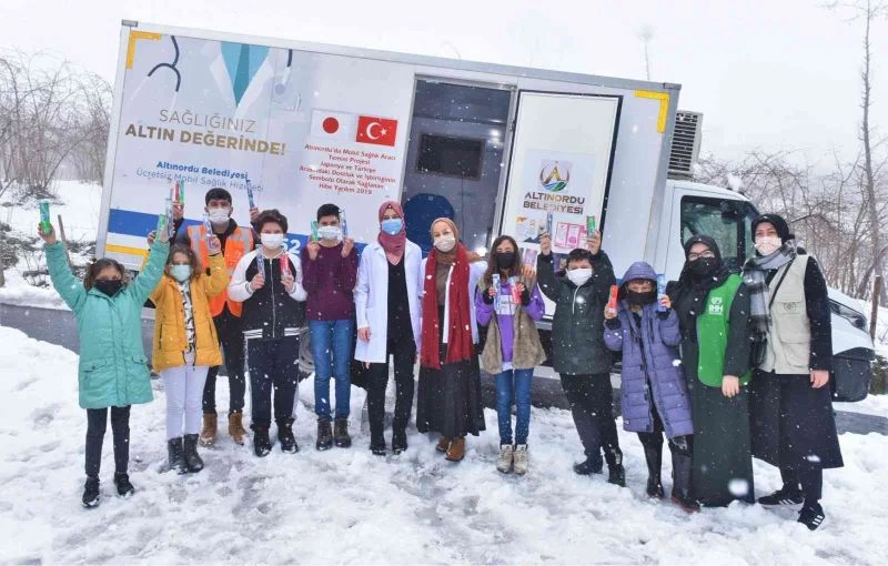 Ordu’nun Altınordu Belediyesi tarafından ilçeye kazandırılan ve hastaneye ulaşımda zorluk çeken vatandaşların kapısına sağlık hizmeti götüren mobil sağlık tarama aracında, minik öğrencilere ağız ve diş sağlığı eğitimleri verildi.