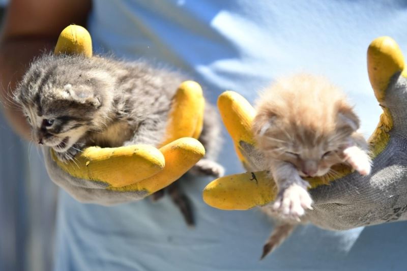 Temizlik ekipleri, Bahçelievler Belediyesi veterinerlik birimini arayarak durumu bildirdi. Olayın yaşandığı yere gelen veteriner ekibi, iki yavru kediyi alıp hızla belediyenin hayvan tedavi merkezine götürdü. Korkmuş ve aç olan yavru kedilerin ilk muayeneleri veteriner hekim tarafından yapıldıktan sonra merkezde bulunan bir anne kedinin altına verilerek kontrol altına alındı.