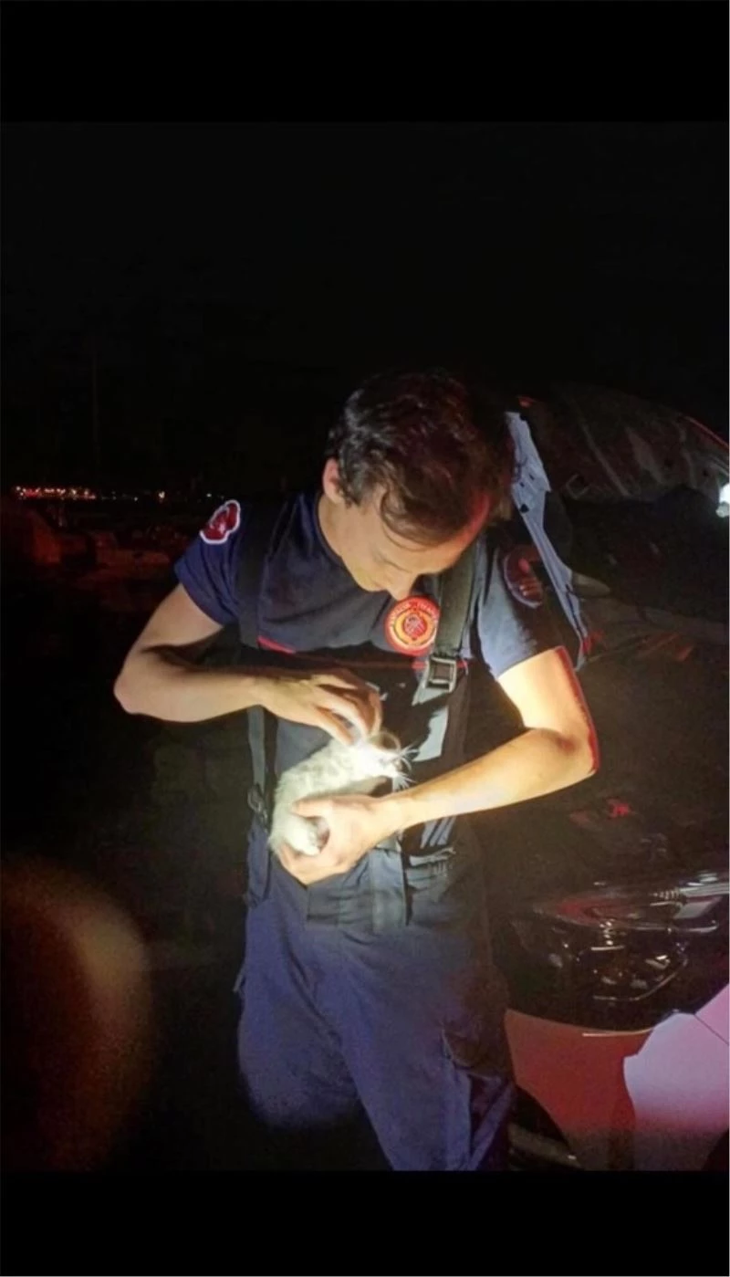 Antalya Büyükşehir Belediyesi Finike İtfaiye erlerinin titiz çalışmasının ardından kedi sıkıştığı yerden kurtarıldı. İtfaiye erleri korkulu gözlerle etrafına bakan yavru kediyi kucaklarında severek sakinleştirmeye çalıştı.