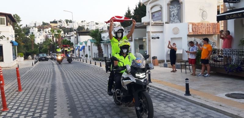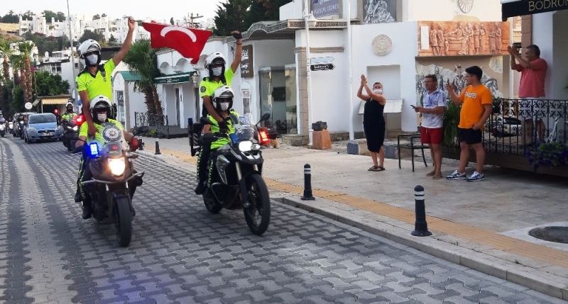 Motorize polisler kortej yaptı, Bodrumlular ayakta alkışladı