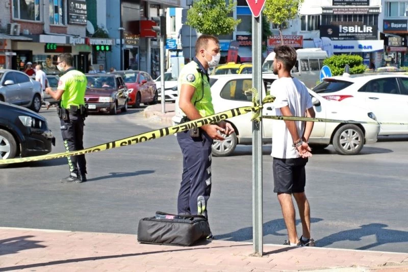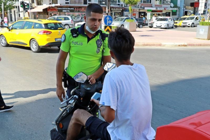 Olay, Muratpaşa ilçesi Güllük Caddesi’nde 16.20 sıralarında meydana geldi. Edinilen bilgiye göre, pizza siparişi için motosikletle yola koyulan Yusuf Dursun (18) kırmızı ışıkları 2 metre geçip motorunun üzerinde gideceği adrese cep telefonundan bakmaya başladı. Bu sırada kavşakta bekleyen trafik polisleri, gençten kimliğini vermesini istedi. Kuryelik yaptığını belirten Dursun, cep telefonundan pizza siparişi götüreceği adrese baktığını söyleyip kimlik vermek istemedi. Bunun üzerine trafik polisleri ile genç arasında tartışma yaşandı.