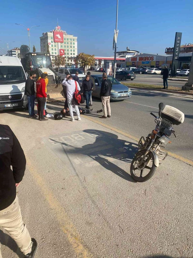 Elazığ’da pikap, motorlu kuryeye çarptı. Kaza nedeni ile motosiklet sürücüsü yaralanırken, pikap sürücüsü olay yerinden kaçtı.