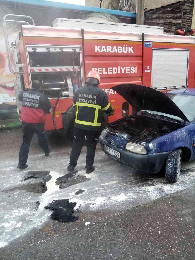 Karabük’te sürücüsünün çalıştırdığı otomobilin motor kısmı alev aldı. Yangın büyümeden itfaiye ekiplerince söndürüldü.