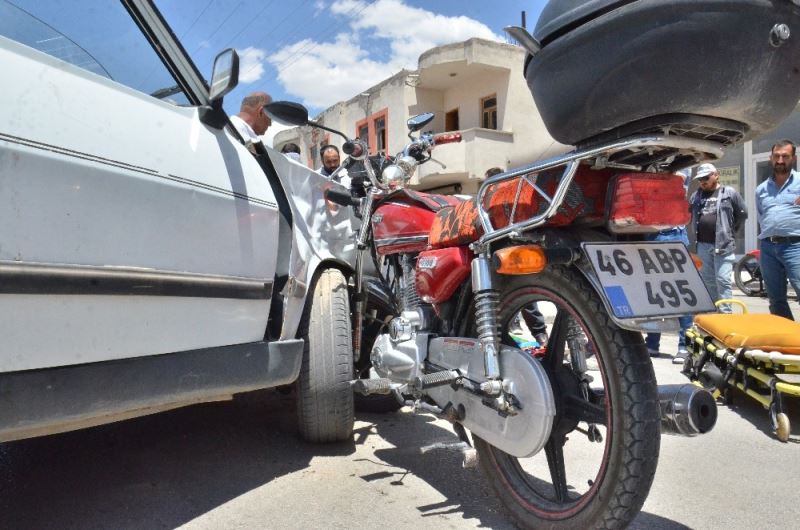 Edinilen bilgiye göre, Söğütlü Caddesi’nde giden Cuma Ö.’nün kullandığı 46 ABP 495 plakalı motosiklet, Sedef Sokak’tan caddeye çıkmak isteyen Nezih K. yönetimindeki 46 EN 182 plakalı otomobile çarptı. Motosiklet, otomobile ok gibi saplandı. Motosikleti ile otomobil arasında sıkışan sürücü Cuma Ö. yaralandı. Yaralı sürücünün yardımına ilk olarak çevredeki vatandaşlar koştu. Ayağına aldığı darbe ile kanlar içerisinde kalan yaralıya, 112 Acil Servis ekiplerince müdahalede bulunuldu. Yaralı, Elbistan Devlet Hastanesine kaldırıldı. Tedavisine burada devam edilen yaralının sağlık durumunun iyi olduğu öğrenildi.