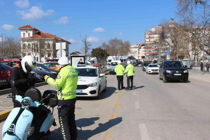 Bandırma Trafik Şube Müdürlüğü ekiplerince şehrin farklı noktalarında motosiklet sürücülerine yönelik uygulama gerçekleştirdiler. Motosiklet kullanımının artması sonrasında meydana gelen kazaları azaltmak ve can güvenliğini sağlamak amacıyla Bandırma Emniyet Müdürlüğü tarafından motosiklet sürücülerine yönelik uygulama gerçekleştirildi. Trafik kazalarında en çok ölüm oranının motosiklette bulunması sebebiyle yapılan uygulamada motosiklet sürücüleri bilgilendirildi. Motosiklet sürücülerini durduran polis ekipleri, kask, ehliyet, ruhsat ve muayene sorgulamalarını gerçekleştirdi. Kaskı olmayan ve eksik evrakları bulunan sürücülere ceza işlem uygulandı. Polis ekipleri motosiklet sürücülerini kasksız sürüş yapmama konusunda uyardı. Uygulamada kask takmayan ve ehliyetsiz sürücülere ceza kesildi.
