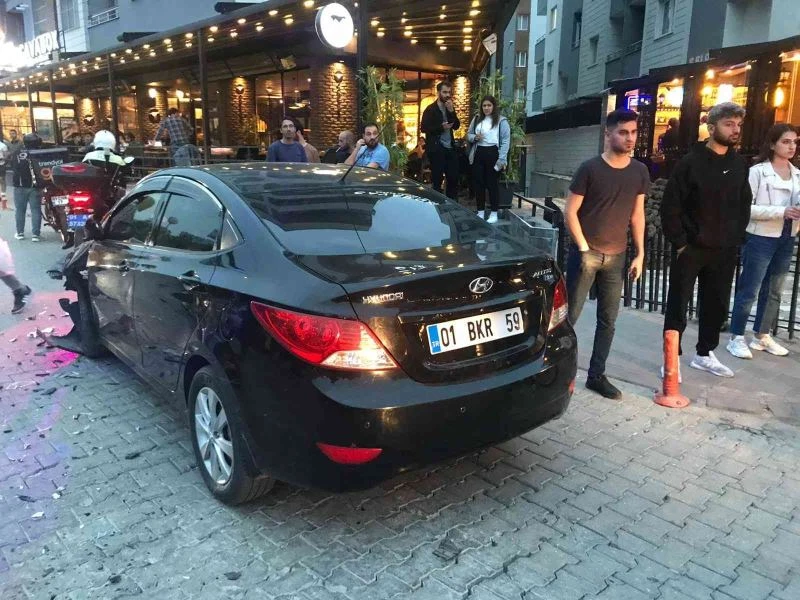 Adana’da otomobil ile çarpışan motosikletin sürücüsünün yaralandığı kazanın güvenlik kamerası görüntüleri ortaya çıktı.