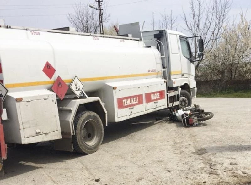 Tekirdağ’ın Saray ilçesinde, tanker ile çarpışan motosikletin sürücüsü yaralandı.