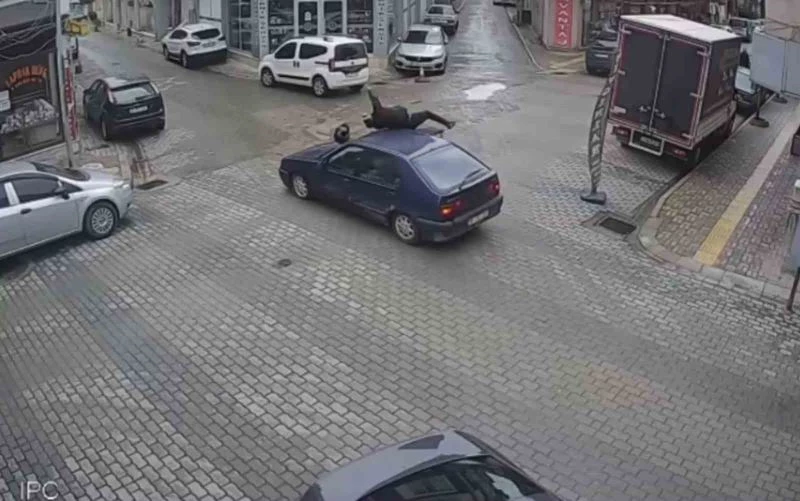 Edinilen bilgiye göre, Gönen ilçesi 70 Evler Caddesi ile Müftü Şevket Caddesi kavşağında otomobil sürücüsü N.Ç. (65) seyrederken, motosiklet sürücüsü A.A. (20) ters yönden gelerek otomobil ile çarpıştı. Çarpmanın etkisiyle kaskı kafasından fırlayan motosiklet sürücüsü önce aracın üstüne takla atarak yere düştü, sonrasında ise ayağa kalktı. Hafif yaralı olduğu öğrenilen motosiklet sürücüsü, çevredekilere kendisinin iyi olduğunu söyleyerek motosikletine binip, olay yerinden uzaklaştı.