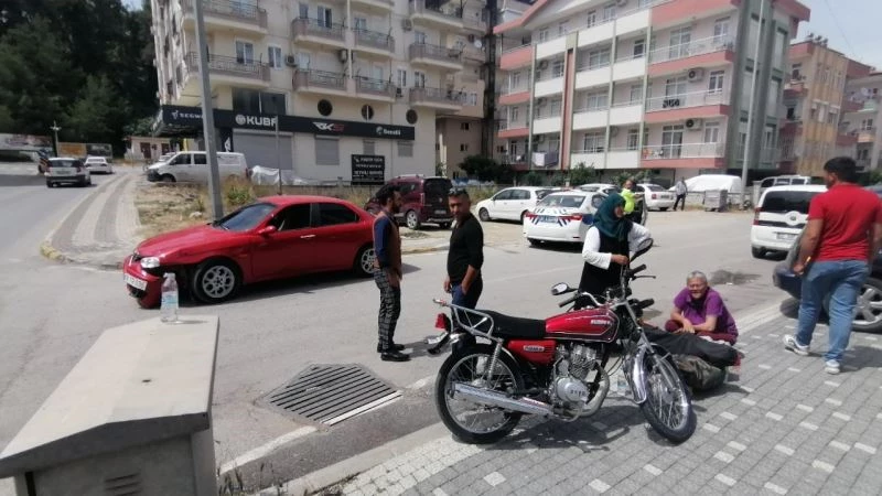Antalya’nın Manavgat ilçesinde motosiklet ile otomobilin çarpışması sonucu meydana gelen kazada motosiklette yolcu olarak bulunan kadın yaralandı.