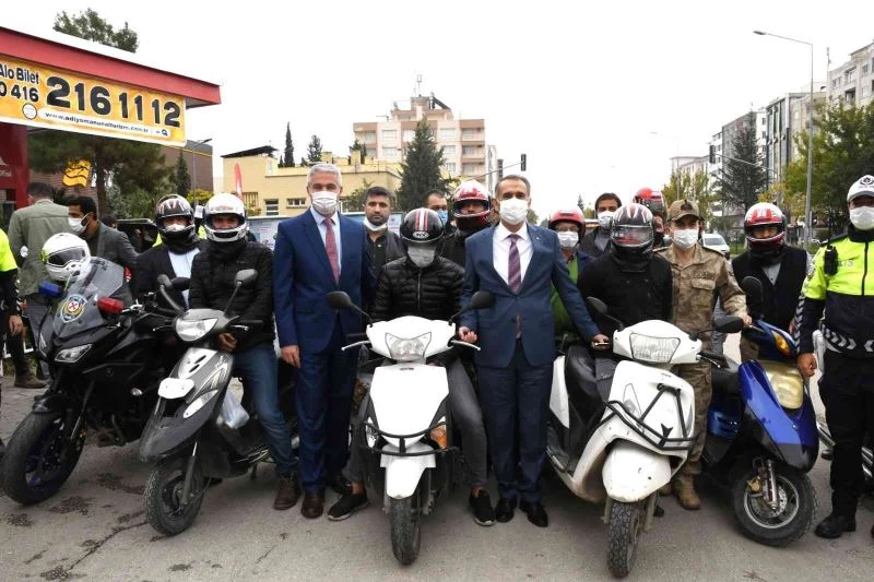 Adıyaman Emniyet Müdürlüğüne bağlı Trafik Tescil ve Denetleme Şube Müdürlüğü ekipleri, motosiklet sürücülerine yönelik farkındalık oluşturmak amacıyla İçişleri Bakanlığınca hayata geçirilen “Kaskınla Yol Ver Hayata” projesi kapsamında motosiklet sürücülerine kask dağıtımı yaptı.