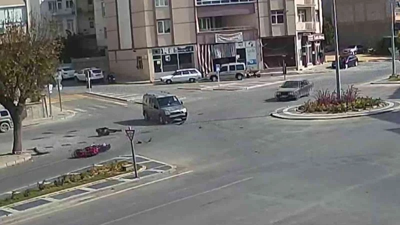 Kaza, önceki gün Cedit Mahallesi Leblebiciler Kavşağında meydana geldi. Kavşağa birlikte giren hafif ticari araçla motosiklet kafa kafaya çarpıştı. Çarpışmanın şiddetiyle motosiklet ve sürücüsü yola savruldu. Asfalt zemine kafasını çarpan motosiklet sürücüsü kafasında takılı olan kaskla kazayı ucuz atlattı. Kısa süreliğine kazanın şokunu yaşayan sürücü, daha sonra ayağa kalkarak kaldırıma doğru yürüdü. Kazayı gören çevredeki vatandaşlar ise hemen motosiklet sürücüsünün yardımına koşarken, o anlar bir binanın güvenlik kamerasına yansıdı.