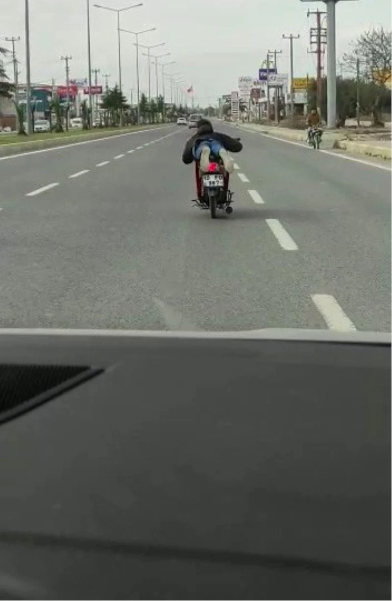 Balıkesir’in Edremit ilçesinde bir motosiklet sürücüsünün seyir halinde motorunun üzerine yatarak yol alması kameralara yansıdı. Sosyal medyada paylaşılan görüntüler büyük tepki çekti.