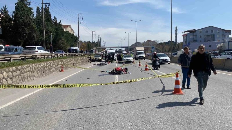 Kocaeli’nin Derince ilçesinde iki kardeşin üzerinde bulunduğu motosiklet, sürücüsünün hakimiyeti kaybetmesiyle orta şeritte seyir halinde olan tırın dorsesinin altına yuvarlandı. Feci kazada motosiklet sürücüsü hayatını kaybetti.