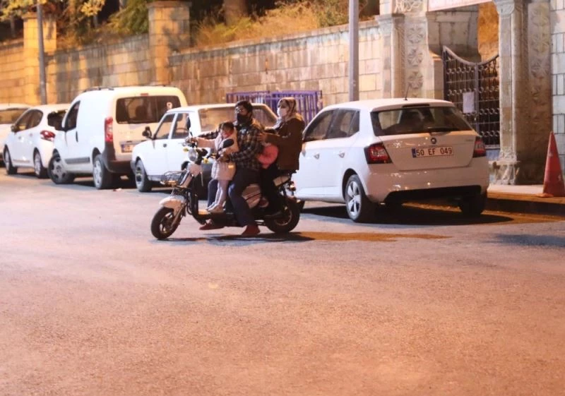NEVŞEHİR (İHA) – Nevşehir’de üzerinde 2’si çocuk 4 kişinin bulunduğu motosikletteki tehlikeli yolculuk objektiflere yansıdı.