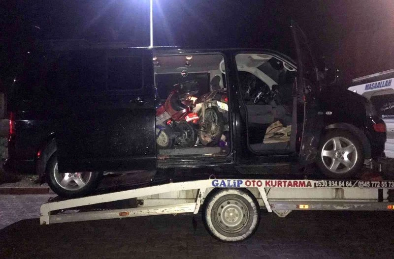 Polis ekiplerince olay yerinde yapılan incelemede panelvan araç içerisinde çalıntı olduğu iddia edilen motosiklet ve elektrikli bisiklet ele geçirildi.