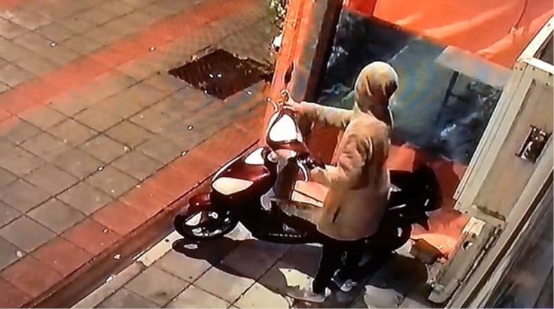 Hırsızlık anı saniye saniye kameraya yansıdı. Görüntülerde hırsızın önce etrafı kontrol ettikten sonra, motosikleti eliyle ittirerek götürmesi dikkat çekti.