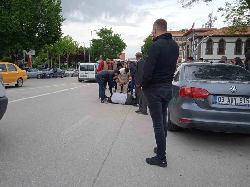 Kaza, kent merkezindeki Zafer Meydanı önünde meydana geldi. Edinilen bilgilere göre, yolda karşıdan karşıya geçmeye çalışan H.H.A. (61) isimli şahsa yolda karşıdan karşıya geçmeye çalıştığı esnada A.D., 03 AEP 325 plakalı motosiklet çarptı. Çarpmanın etkisi ile yere düşen şahıs kafasından yaralandı. Kazanın ardından H.H.A., isimli şahıs çevredekilerin haber vermesi ile olay yerine gelen 112 Acil servis ambulansı ile Afyonkarahisar Devlet Hastanesine kaldırıldı. Şahsın tedavisinin devam ettiği bildirilirken, olayın ardından sürücü A.D., ise polis tarafından gözaltına alındı.