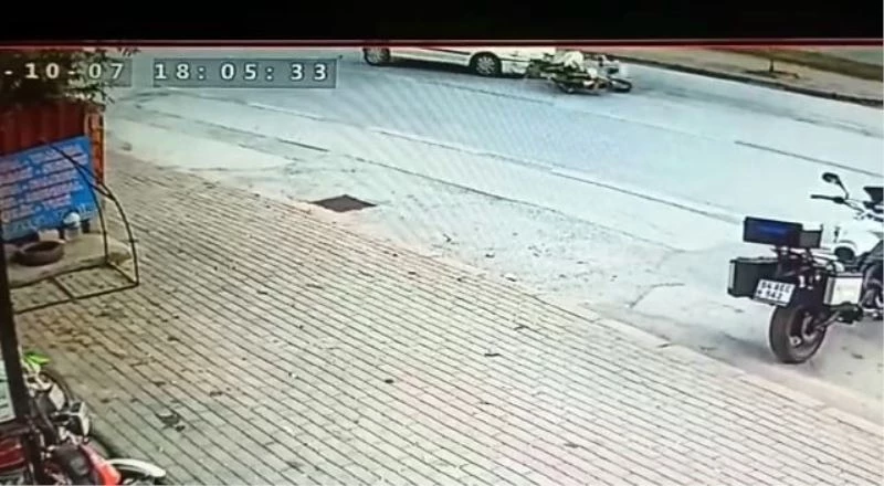 Kaza anı güvenlik kamerasına saniye saniye yansıdı. Kazada otomobil ile motosikletin kafa kafaya çarpıştığı anlar ve motosiklet sürücüsünün yerde sürüklendiği anlar yer aldı. Kaza sonrası vatandaşların da bölgeye koştuğu anlar görüntülere yansıdı.