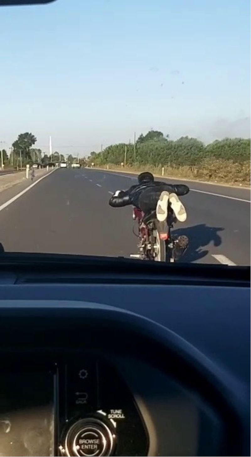 Olay, Karasu-Kocaali yolu üzerinde meydana geldi. Ölümü göze alarak motosikletinin üzerine yatarak yolculuk yapan bir sürücü yürekleri ağızlara getirdi. Plakası, kaskı, koruyucu elbisesi olmadan motosiklet kullanan sürücü hem kendini hem de trafikteki diğer sürücüleri tehlikeye attı. Tehlikeli yolculuğu gören bir araç sürücüsünün yanında oturan yolcu ise o anları cep telefonu ile saniye saniye kayıt altına aldı. Vatandaş kameralarına yansıyan görüntülerde ölüme meydan okuyan sürücünün yatarak kullandığı motosiklet ile bir aracı solladığı ve motosikletine yatarak yolculuğuna devam ettiği görülüyor.