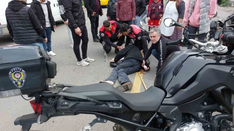 Samsun’da motosikletli yunus polisinin yolu karşıya geçmek isteyen yaşlı adama çarptığı kazada 1 kişi yaralanırken, kaza anı güvenlik kamerasına yansıdı.