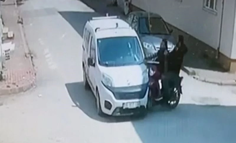 Bursa’da hafif ticari araç ile çarpışan motosikletteki 2 kişi ağır yaralandı. Kaza anı saniye saniye güvenlik kameralarına yansıdı.