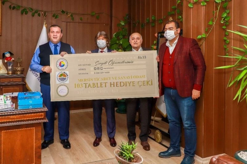 Mersin Ticaret ve Sanayi Odası (MTSO), TOBB tarafından başlatılan kampanya kapsamında, korona virüs sürecinde uzaktan eğitim alan ancak bilgisayarı olmayan öğrencilere 103 adet klavyeli tablet bilgisayar hediye etti.