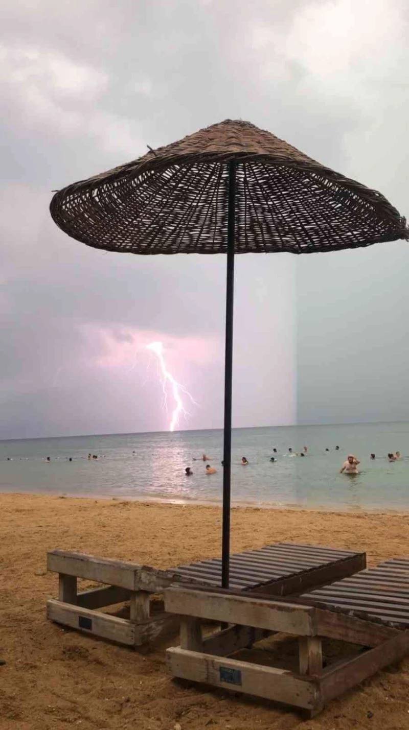 Mudanya’da çakan şimşekler Armutlu sahilinden böyle görüldü
