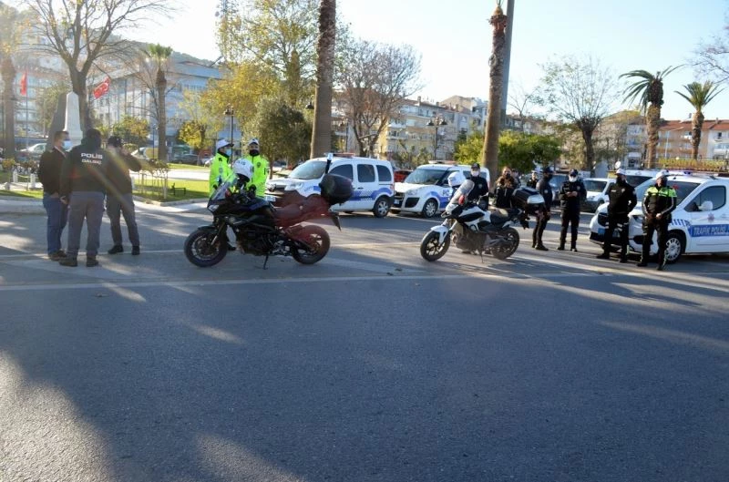 Uygulamaya Kaymakam Ayhan Teri ile birlikte İlçe Emniyet Müdürü Vekili Serdar Makineci, İlçe Jandarma Komutanı Binbaşı Ercan Yavuz, Trafik Polisi, Deniz Polisi, Sahil Güvenlik Komutanlığı ve jandarma ekipleri katıldı. Uygulamada Kaymakam Ayhan Terzi, sürücülere trafik kurallarına, emniyet kemeri takılması ve yayalara öncelik tanıma konularında hatırlatmalarda bulunarak, sürücülere "Bi Hareketine Bakar Hayat" adlı broşür dağıttılar.