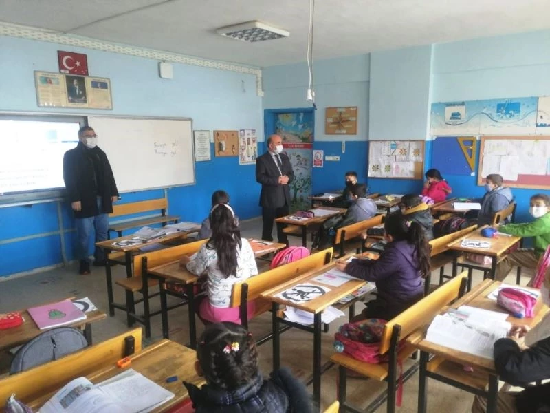 Hisarcık İlçe Milli Eğitim Müdürü İlhan Cebeci, yüz yüze eğitime başlanan köy okullarında incelemelerde bulundu.