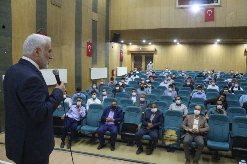“Vekâlet yoluyla kurban” konulu toplantılarda konuşma yapan İl Müftüsü Tandoğan Topçu, yürütülen organizasyonun çok büyük bir iyilik hareketi olduğunu ifade ederek sözlerine şöyle devam etti; “Bizler, vakfımızın bütün hizmetlerinde gecelerimizi gündüzlerimize katmalıyız. Özelikle kardeşlik bağlarını güçlendiren ve insani yardım noktasında büyük bir faaliyet olan vekalet yoluyla kurban bağışı kampanyasında daha özverili ve azimli çalışmalıyız. Davamıza ve hizmetimize sahip çıkmalıyız. Çünkü bizler hakkıyla çalışıp bu kampanyada hayırsever vatandaşlarımıza ulaşamaz isek, önceki yıllarda FETÖ gibi istismar örgütleri nasıl milletimizin zekât ve kurbanını kendi hain emelleri için kullandıysa bugün de başka birileri kullanabilir. Bunun için bizler milletimizin kurbanını korumakla mükellefiz. Allah katında muhtaç insanlara karşı mahcup olmamak için bu organizasyonu samimiyetle dertlenmemiz gerekmektedir. Dünyanın dört bir yanında bir yudum suya bile muhtaç insanların umutlu bekleyişlerine ışık olmak için çok çalışmalıyız. Bu bilinçle hareket ederek son iki yıldır Ağrı’da başardığımız kurban bağış rekorunu iki katına çıkarmalıyız.”