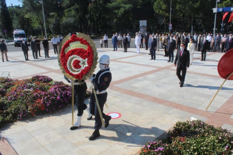 Muğla’da 30 Ağustos Zafer Bayramı kutlamaları, Cumhuriyet Meydanı’ndaki Atatürk Anıtı’na Vali Orhan Tavlı ve Muğla Büyükşehir Belediye Başkanı Osman Gürün’ün çelenk koymasıyla başladı.