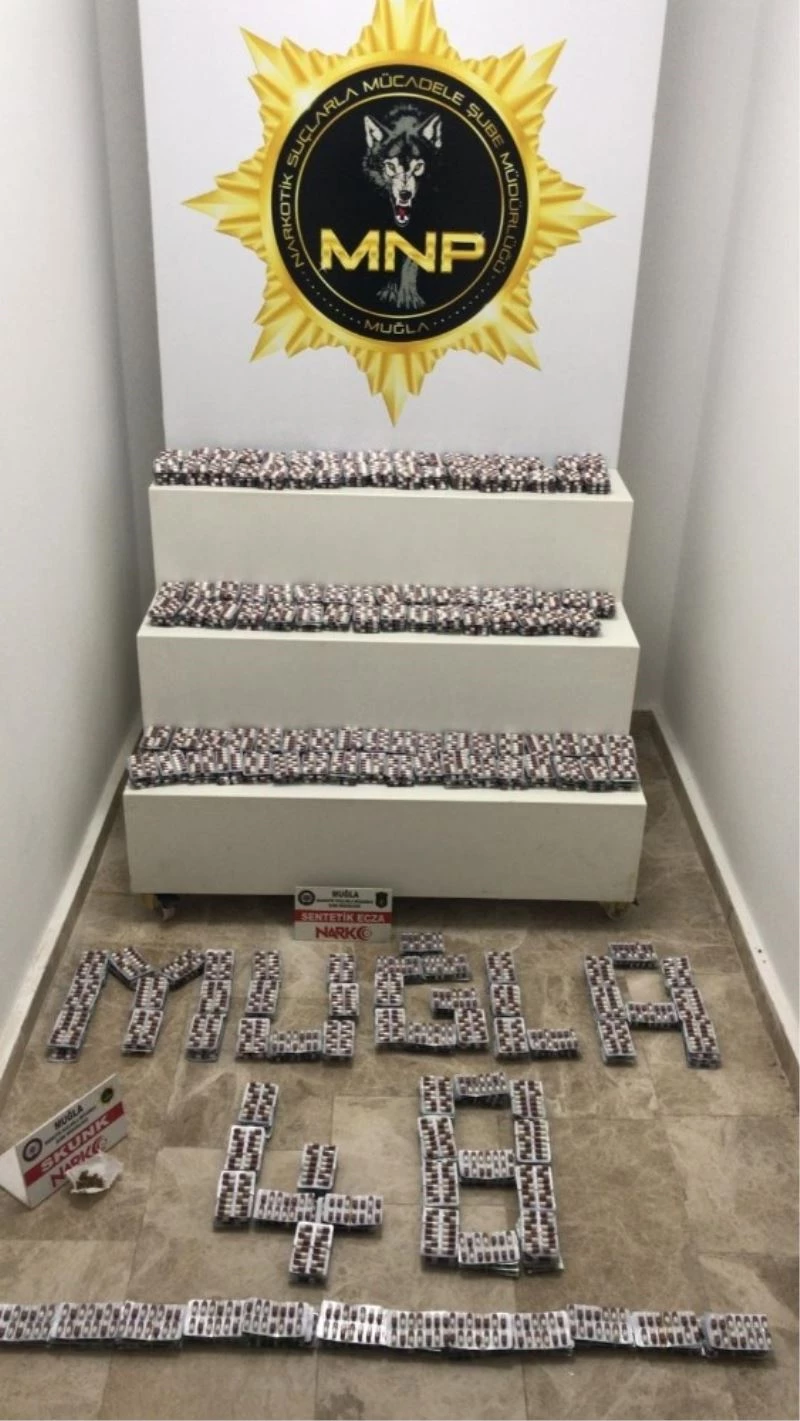 Edinilen bilgiye göre, Muğla İl Emniyet Müdürlüğü, Narkotik Suçlarla Mücadele Şube Müdürlüğü Teknik Büro Amirliği ekipleri tarafından sistem analizi sonucu tespit edilen araç il girişinde durduruldu. Araç içerisinde yapılan aramada M.Y. isimli şüphelinin üstünden 1.22 gram skunk maddesi, aracın bagaj kısmında ise çuval içerisinde 9 bin 505 adet sentetik hap ele geçirildi. Araçta bulunan M.Y. ve K.E. isimli şüpheliler polis tarafından gözaltına alındı.