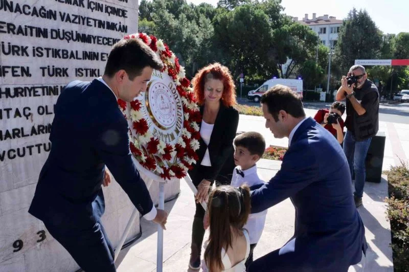 İl Milli Eğitim Müdürü Emre Çay’ın öğrenciler eşliğinde Cumhuriyet Meydanında İl Milli Eğitim Müdürlüğü çelengini sundu. Tören, saygı duruşu ve İstiklal Marşı’nın söylenmesi ile devam etti.