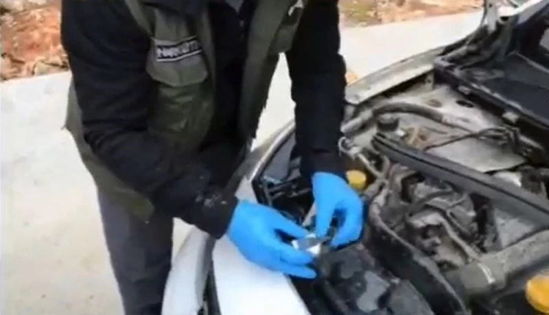 Narkotik köpeklerinin de yer aldığı operasyonlarda bir aracın motor bölümüne gizlenmiş uyuşturucu narkotik köpekler tarafından bulundu.