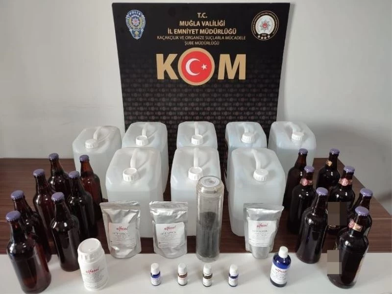 Emniyet Genel Müdürlüğü Kaçakçılık ve Organize Suçlarla Mücadele Daire Başkanlığı koordinesinde 81 ilde yapılan ’alkollü içki kaçakçılığı ile mücadelede Muğla İl Emniyet Müdürlüğü KOM Şubesi ekipleri, Bodrum, Menteşe, Marmaris, Milas ve Fethiye ilçelerinde eş zamanlı operasyon düzenledi. Operasyonda şüphelilerin ev ve iş yerlerinde yapılan aramada 100 litre sahte içki, Roma dönemine ait 1 bronz kılıç, 9 bin 400 adet dolu makaron, 6 kilo kaçak tütün ve alkol yapımında kullanılan malzemeler ele geçirildi. Operasyonda gözaltına alınan 15 şüphelinin emniyetteki işlemlerinin ardından adliyeye sevk edileceği öğrenildi. Yakalanan şüphelilerden 10’u emniyetteki işlemlerin ardından adli kontrol şartı ile serbest kalırken 5 şüphelinin ise emniyetteki işlemlerinin ise sürdüğü öğrenildi.