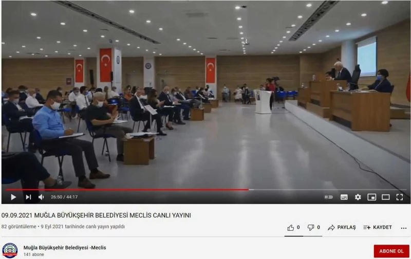 Muğla Büyükşehir Belediyesi’nin ‘Şeffaf Yönetim’ anlayışı ile mal ve hizmet alım ihaleleri ve meclis toplantıları için başlattığı canlı yayın uygulaması kesintisiz olarak devam ediyor. Kurulduğu günden bu yana açıklık, şeffaflık ve hesap verilebilirlik ilkesi ile çalışmalarını sürdüren Muğla Büyükşehir Belediyesi, yıllardır mal ve hizmet alımları ile Büyükşehir Belediyesi meclis toplantılarını canlı yayınla vatandaşların denetimine sunuyor.